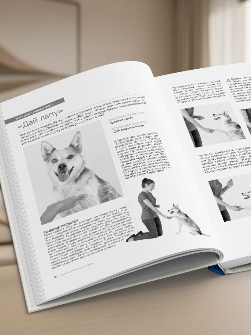 Авторы — профессиональный дрессировщик и звезда собачьих шоу — собрали 118 пошаговых трюков, которые подойдут любой собаке: от щенка до взрослого компаньона. Всё просто, понятно и без стресса — только положительное подкрепление и крепкая связь между вами и вашим питомцем.
