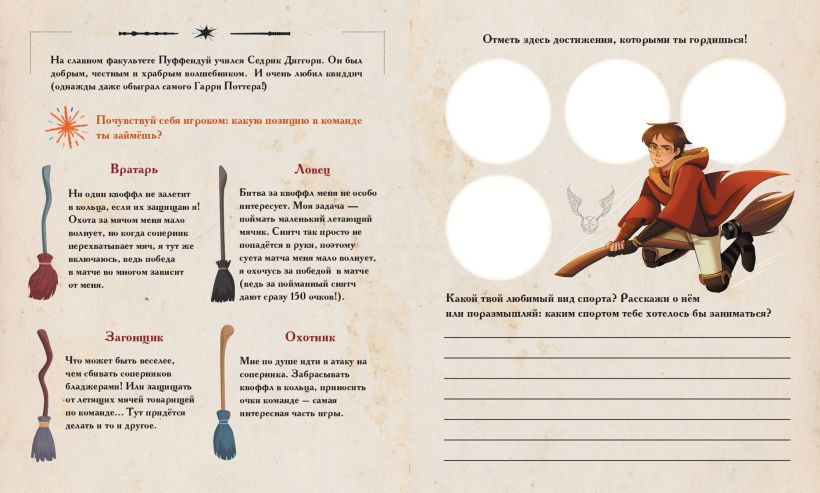 Делись своими мыслями и мечтами, учись сражаться со страхами и открывай в себе новые таланты. Придумывай собственные заклинания, составляй рецепты зелий, делай предсказания и проходи тесты от лучших преподавателей Хогвартса.