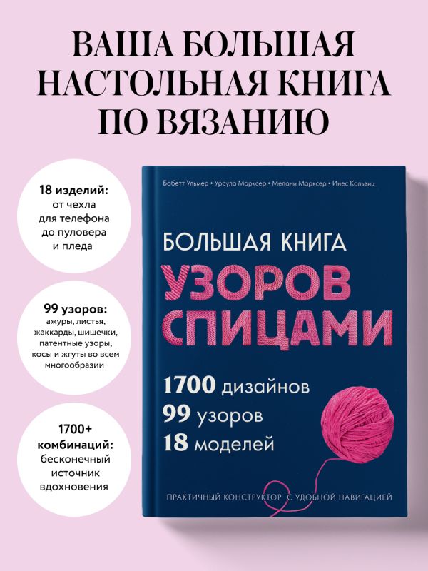 Четыре опытных автора — Бабетта Ульмер, Урсула и Мелани Марксер, Инес Кольвиц — вложили в это издание весь свой многолетний опыт, создав поистине уникальный справочник, который станет верным помощником как для начинающих, так и для опытных вязальщиц.