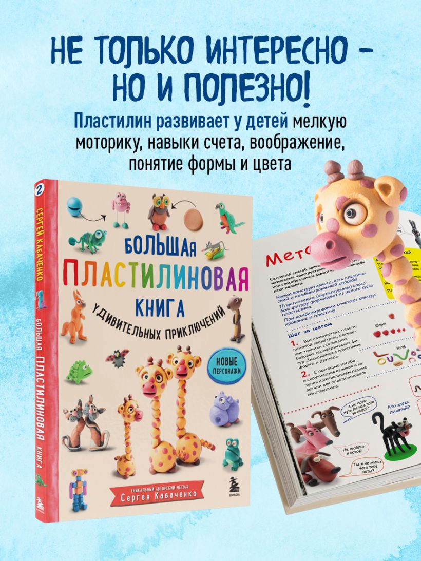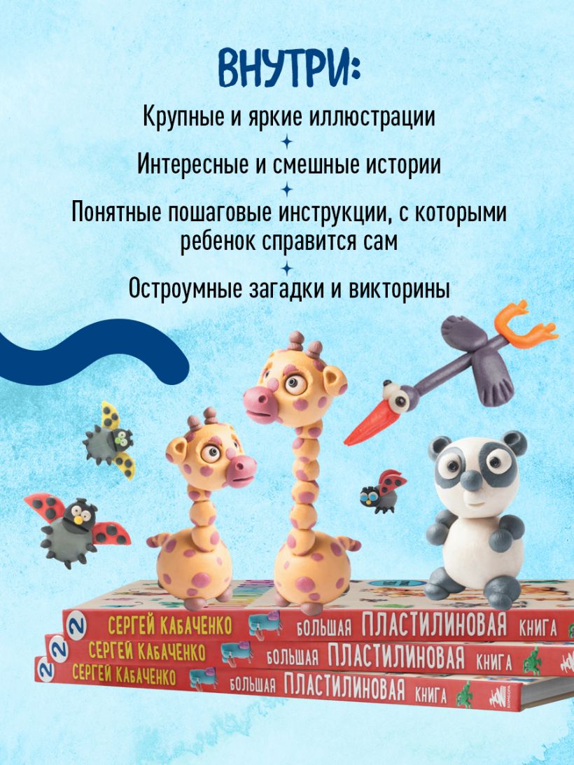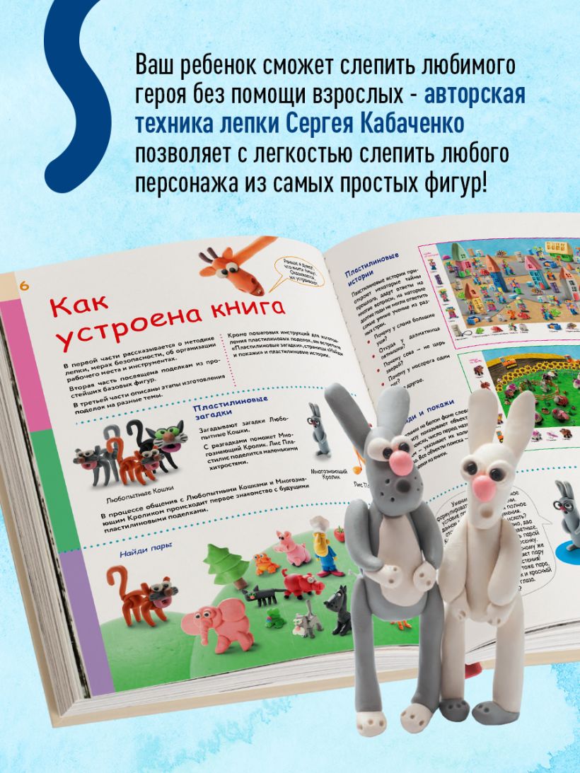 Более 100 персонажей, оживающих на страницах и в руках ребенка! Фигурки, которые сможет слепить малыш любого возраста! Любой ребенок обожает лепить из пластилина – он пластичный и мягкий, яркий, тактильно приятный. А еще он открывает множество возможностей для развития детской фантазии и мелкой моторики. Это отличный способ подготовиться к детскому саду или к школе – наша книга подходит даже для самых маленьких детей, которые только начинают познавать этот мир! Яркие рисунки сопровождают увлекательные игры и красочные комиксы! Сергей Кабаченко, автор бестселлеров, создал уникальный метод лепки! Ребенок любого возраста сможет слепить любимого зверенка без помощи взрослых: все персонажи собираются из самых простых фигурок, с которыми малыш справится сам – шариков и колбасок. Каждый этап работы сопровождают крупные, понятные и яркие пошаговые иллюстрации, в которых малыш сможет разобраться сам и слепить героя своей мечты! Книга развивает у ребенка самостоятельность и смекалку. А еще лепка – это отличный способ провести время с пользой! Лепите, играйте, фантазируйте, изобретайте, смейтесь, творите! Продолжение следует!