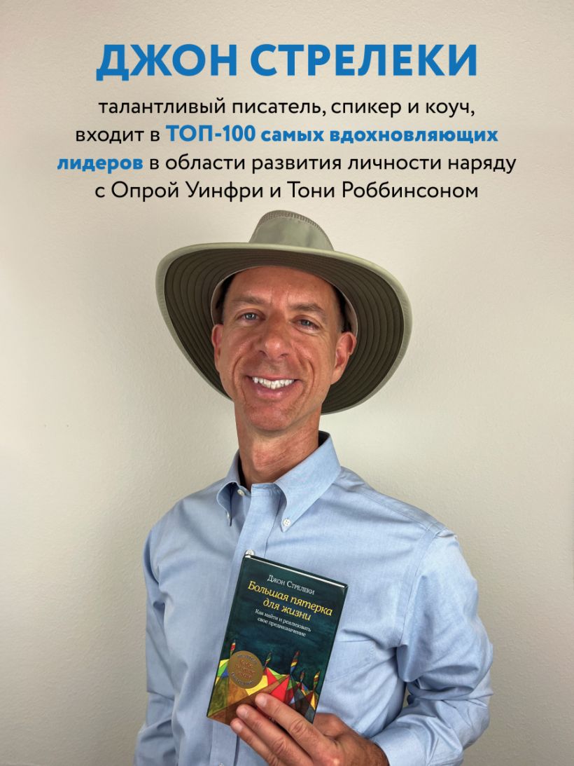 Джон Стрелеки — писатель, путешественник и коуч, известный по всему миру. Его бестселлеры «Кафе на краю земли» и «Возвращение в кафе “Почему”» вышли на 21 языке в более чем 40 странах, воодушевив миллионы человек по всему свету. Наряду с Опрой Уинфри, Тони Роббинсом и Стивеном Кови входит в список ста самых вдохновляющих творческих лидеров в области развития личности.