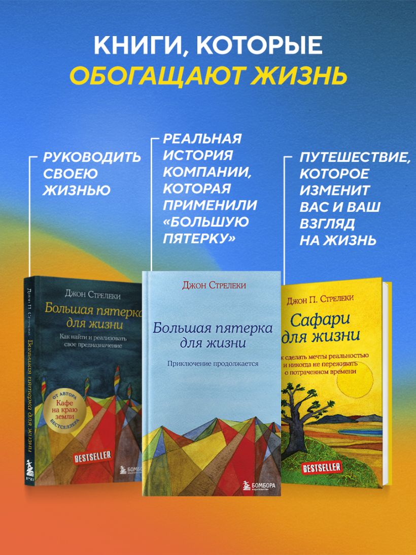 Перед вами продолжение одной из лучших книг о построении бизнеса и лидерстве. «Большая пятерка для жизни» уже помогла многим людям пересмотреть свои приоритеты и открыться для новых возможностей. Но были и скептики, которые утверждали, что это лишь утопия, прекрасные идеи, не реализуемые на практике. В книге «Большая пятерка для жизни: приключение продолжается» вымысел встречается с реальностью: Джон Стрелеки знакомит нас с канадской компанией, которая уже несколько десятилетий работает по принципам, описанным в книге.