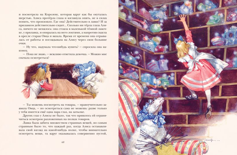 Каждая встреча с любопытной Алисой открывает перед читателем всё новые и новые просторы для воображения. На этот раз Алиса попала в Зазеркалье — страну, которая располагается прямо за границами зеркала в её комнате. В продолжении сказки «Алиса в Стране чудес» Льюис Кэрролл не изменяет себе: нас снова ждут искромётные диалоги, необычные повороты сюжета, чудеса и встречи с диковинными персонажами.