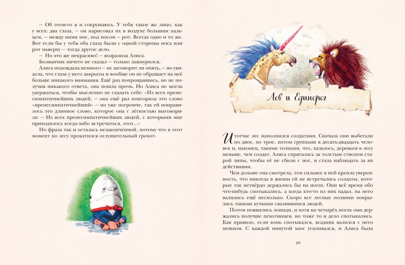Необыкновенные иллюстрации к книге «Алиса в Зазеркалье» создал известный итальянский художник Либико Марайя, Мастер Образа в классической книжной иллюстрации. Герои и сюжеты, вышедшие из-под его кисти, приобрели удивительную выразительность, уникальные черты и красочность, а иллюстрированную книгу сам художник называл не иначе, как театром, в разнообразии которого заключена сама жизнь.