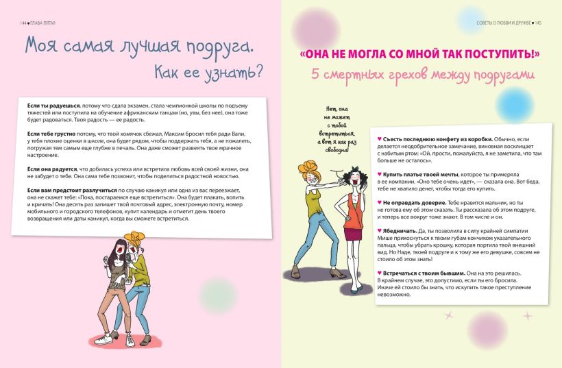 Эта книга — лучший подарок для девочки 11 лет и старше. Книга для подростка, которой вступает во взрослую жизнь и нуждается в правильных советах, помогающих избежать проблем и быть счастливой. Особенно полезна она будет девочкам, которые: • хотят выглядеть отлично, не изнуряя себя диетами и питаясь правильно; • нуждаются в объяснениях, какие изменения происходят в их организме в пубертатном возрасте и как действовать в связи с этим; • мечтают научиться пользоваться косметикой правильно, найти свой стиль и быть модной; • интересуются секретами успеха, способами, как стать популярной и стать приятной в общении; • ищут новые идеи для самореализации и саморазвития; • не равнодушны к кулинарии и хотели бы научиться готовить свои любимые блюда; • переживают, выслушивая критику, хотят находить общий язык с разными людьми; • сталкиваются с проблемами в учебе, испытывают трудности с самоорганизацией и нуждаются в мотивации. Эта книга будет настоящей подругой для любой девочки, которая вступает в период взросления.