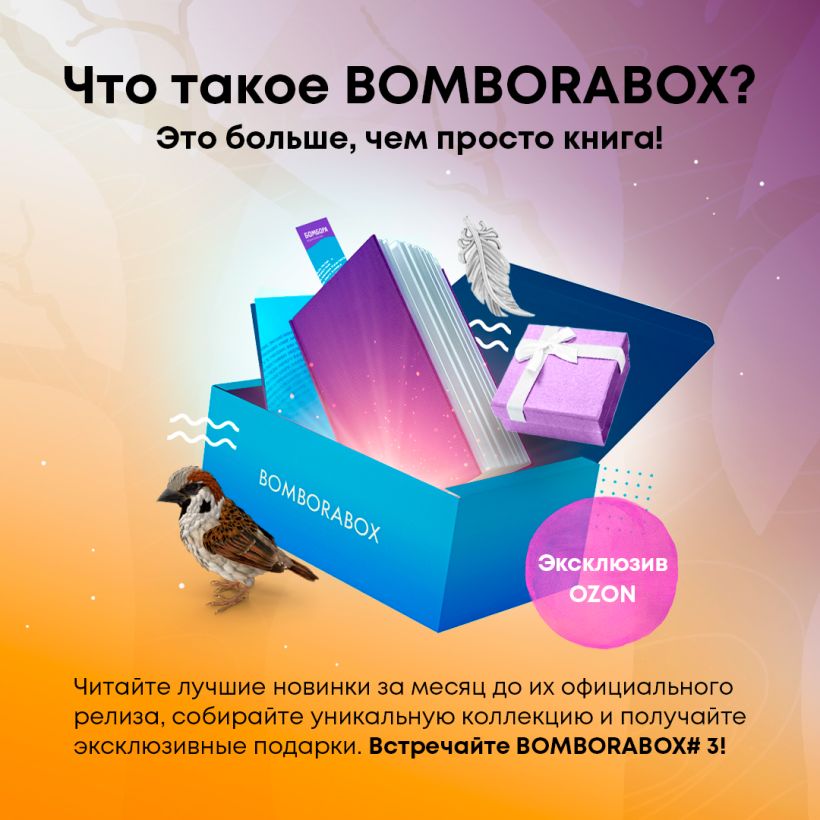 BOMBORABOX — это книги издательства БОМБОРА, которые выпускаются в коллекционном оформлении и в сопровождении эксклюзивных дополнительных материалов, расширяющих читательский опыт и дарящих незабываемые эмоции от чтения. Бокс выходит ограниченным тиражом за несколько недель до появления самой книги в онлайн- и офлайн-магазинах в обычном оформлении. Коллекционное издание доступно только тем, кто успел приобрести BOMBORABOX!