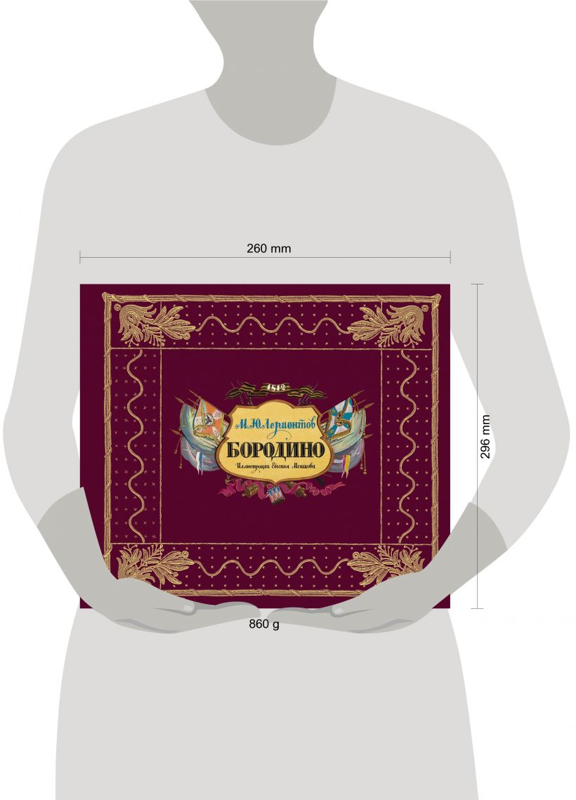 Коллекционное литературно-художественное издание. Для коллекционеров, историков- баталистов, в качестве подарка, в том числе и детям младшего школьного возраста, увлеченных военной историей. Уникальность книги Живое батальное полотно в стихах М.Ю. Лермонтова дополняет визуальное воплощение Бородинского сражения в иллюстрациях Евгения Мешкова. Иллюстрации сделаны буквально к каждой строфе произведения. Отличия этой книги 1. Альбомный формат предоставляет возможность панорамно показать на иллюстрациях все стадии битвы, описанной Лермонтовым. 2. Крупный текст позволяет читать это произведение и младшим школьникам. 3. Постраничное иллюстрирование позволяет разбить текст на фрагменты, которые легко заучивать наизусть (это входит в учебный план начальной школы). 4. Шелковый переплет и ленточка ляссе, плотная мелованная бумага - элементы богатого подарка. Это книга - хороший подарок как школьникам, так и коллекционерам. Об авторе / иллюстраторе Художник Евгений Алексеевич Мешков (род. 1932 г.) - известный иллюстратор, в том числе и сказочных повестей, член Союза художников. Сотрудничал в том числе и со студией «Диафильм», для которой создал множество рисунков. Сам художник говорил о своей работе: «Это известное всем со школьной скамьи стихотворение поначалу казалось не таким уж сложным для иллюстрирования. Но после подготовительного периода (поиск композиционных вариантов, цветового решения и прочего) стало ясно: моих познаний о той эпохе недостаточно. Как выглядели мундиры, знамена, вооружение русских и французских полков? Как представить себе, скажем, «уланов с пестрыми значками» или «драгунов с конскими хвостами»? Вопросам не было конца. И прежде чем приступить к работе над оригиналами, мне пришлось проштудировать горы исторической литературы. В результате изначальный замысел - удержать в изобразительной форме ритм стихотворения, передать в подробностях картины Бородинской битвы, представленные у Лермонтова зачастую одной строкой, - смог получить исторически достоверное воплощение». Если стихотворение М. Ю. Лермонтова - это рассказ от первого лица о событиях на Бородинском поле, то рисунки Е. Мешкова практически создают эффект зарисовок очевидца битвы, настолько точно переданы переходы от битв к затишьям в стане русских войск, дым и копоть от рвущихся снарядов, и дым от костров в моменты затишья, когда можно увидеть и хитрую ухмылку канонира, и трубку в руке усталого гусара, и уснувшего у лафета пушки солдата - не хрестоматийные сюжеты, а личный рассказ. Книга привлекает внимание нестандартным альбомным форматом, прекрасным исполнением в сегменте премиум, шелковый переплет с тиснением золотом, блинтовым тиснением и приклеенной иллюстрацией в виде картуша старой карты.