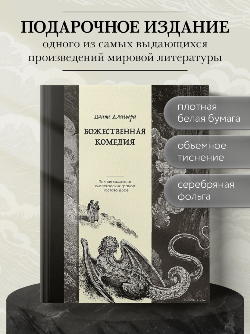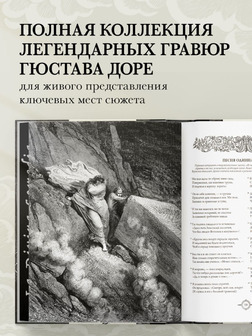 Великолепный классический перевод Дмитрия Минаева передает терцинный строй оригинального текста, а легендарные гравюры Гюстава Доре позволяют визуализировать самые знаковые места хрестоматийного сюжета и оценить сценический гений Данте в построении мизансцен и смене гигантских декораций.