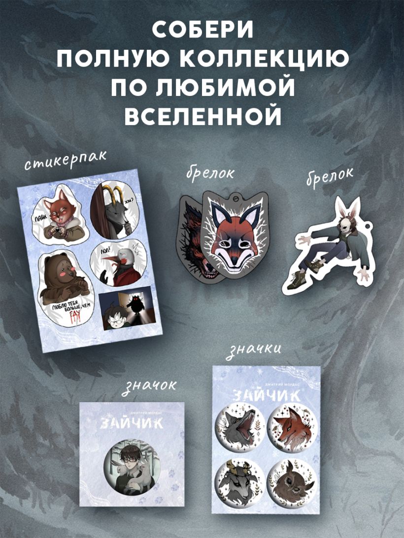 Читай рассказ в классическом варианте или в виде комикса, а может быть, тебе придется по душе формат вебтуна. Не расставайся с любимыми героями ни на минуту, собери коллекцию мерча с персонажами комикса, состоящую из значков, брелоков, стикерпака и шоппера! И это еще не все — список будет пополняться!