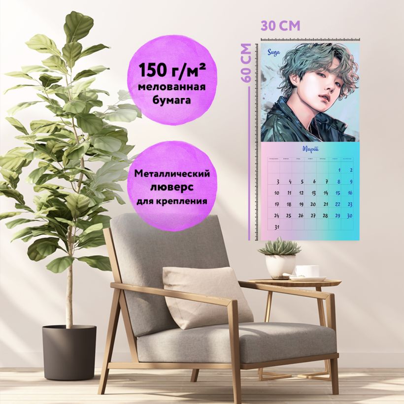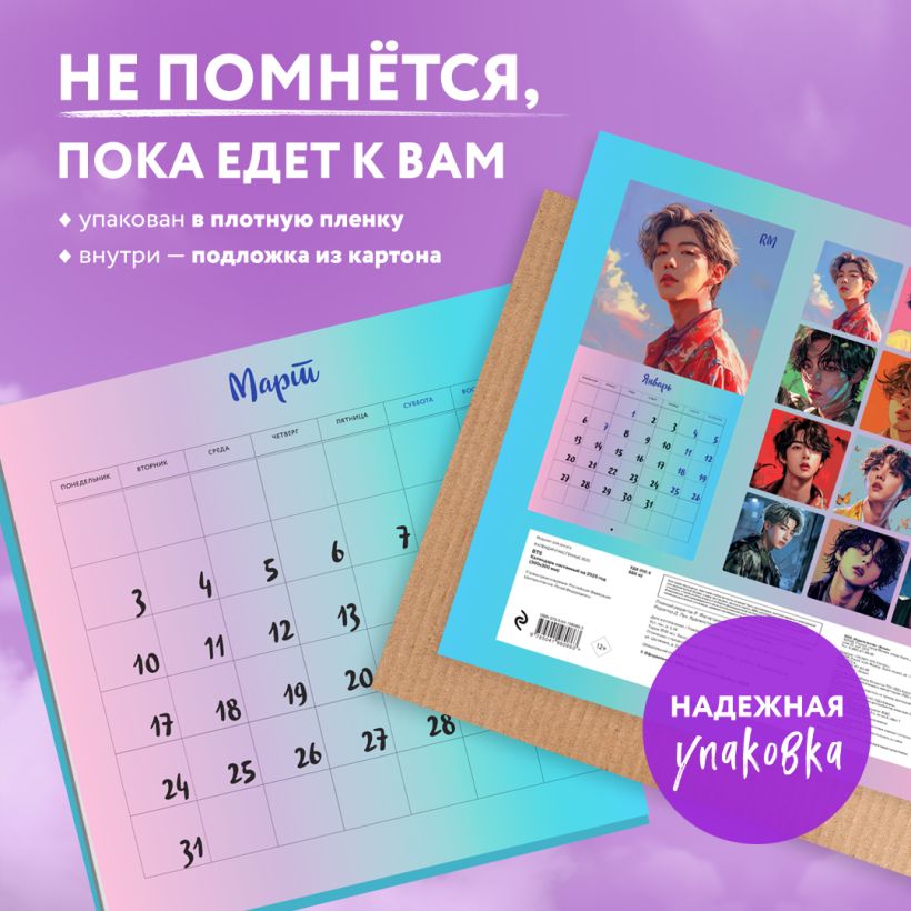 Идеального календаря для поклонников BTS не существуе... Стоп! Качественная бумага, большой формат (300х300мм) и креативная сетка с портретами всех участников группы! Отличный подарок поклонникам! Пусть год будет полон К-РОР!