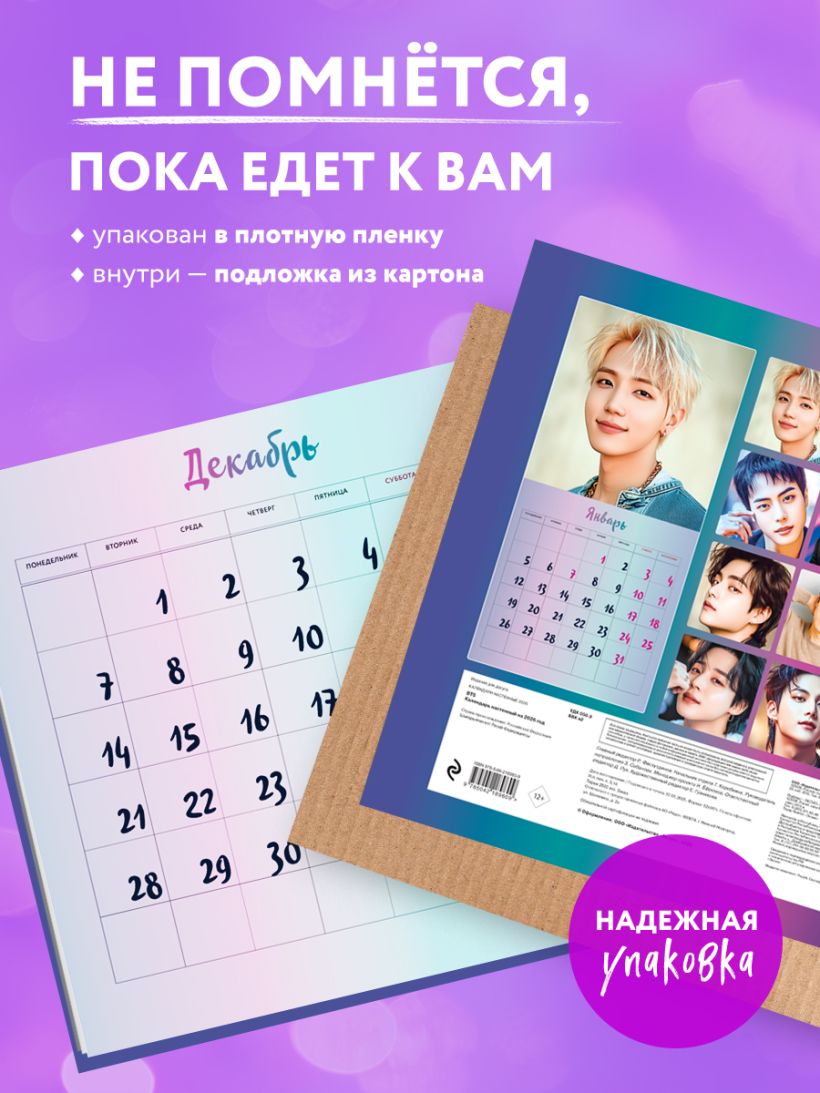 Идеального календаря для поклонников BTS не существуе... Стоп! Качественная бумага, большой формат (300х300 мм) и универсальная сетка с портретами всех участников группы! Отличный подарок поклонникам! Пусть год будет полон К-РОР!