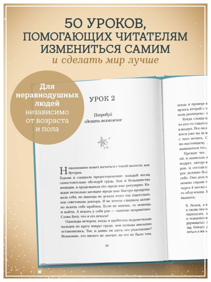 Книга состоит из вдохновляющих 50 рассказов-уроков. Это истории из жизни автора и других людей, с которыми она встречалась за годы журналистской деятельности.