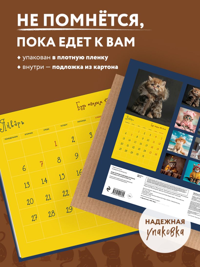 Настенный календарь с забавными очаровательными котиками, который поднимет настроение и станет идеальным подарком всем любителям кошек. Яркие милые изображения доплнены смешными подписями.