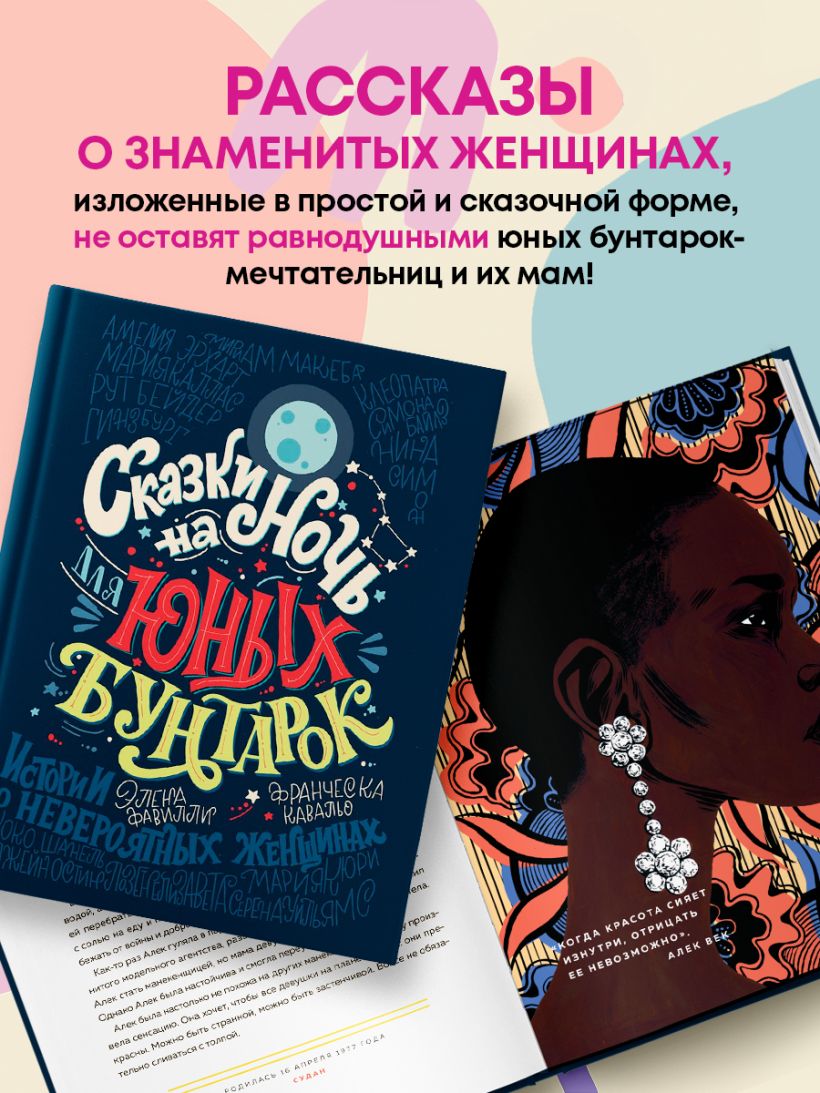 «Коротенькие рассказы, проливающие свет на жизнь необыкновенных женщин, преодолевших трудности и перешагнувших через предубеждения, рассказанные просто и вдохновляюще, но без нравоучительности и навязчивости. Эта книга помогла мне обсудить сложные вопросы брака, половой идентификации и личностного восприятия с моими детьми. Единственное, что я бы поменял – написал не «для юных бунтарок», а «о девочках-бунтарках», так как она подходит и для мальчиков, и для родителей тоже».