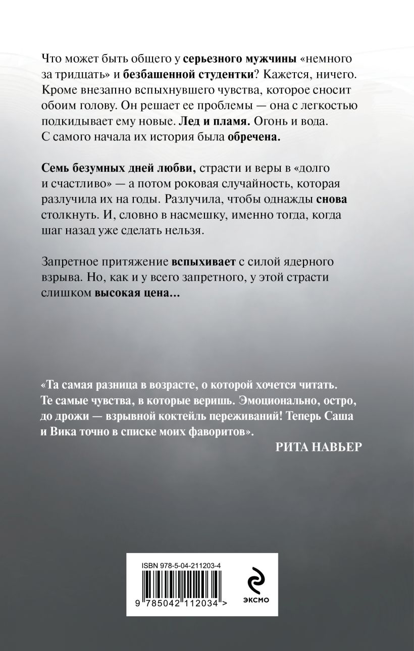 «Та самая разница в возрасте, о которой хочется читать. Те самые чувства, в которые веришь. Эмоционально, остро, до дрожи — взрывной коктейль переживаний! Теперь Саша и Вика точно в списке моих фаворитов». — Рита Навьер