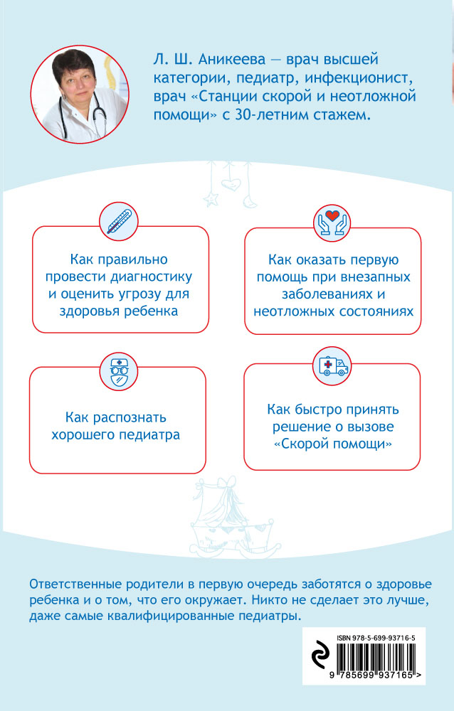 От начала болезни до врачебного осмотра всегда проходит какое-то время, когда мама остается наедине с малышом, нуждающимся в первой помощи. Незаменимая книга для мам - книга Ларисы Аникеевой - врача высшей категории, педиатра, врача станции скорой и неотложной медицинской помощи города Москвы с 30-летним стажем.