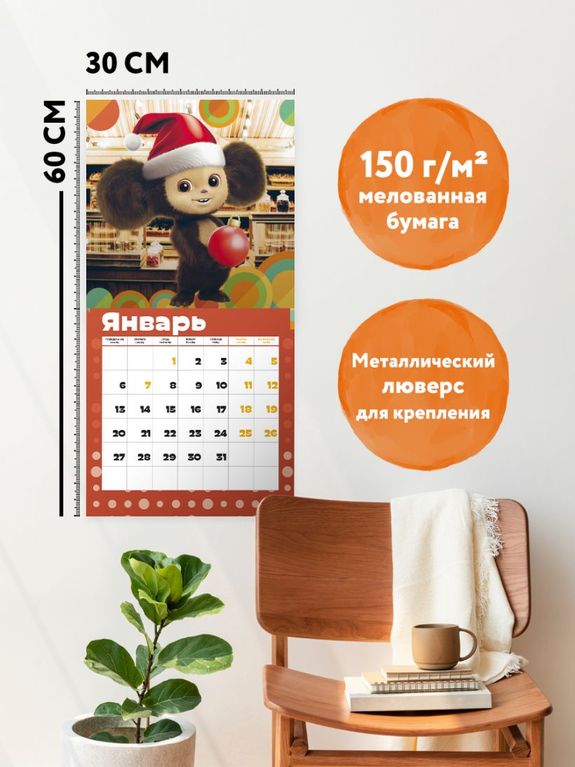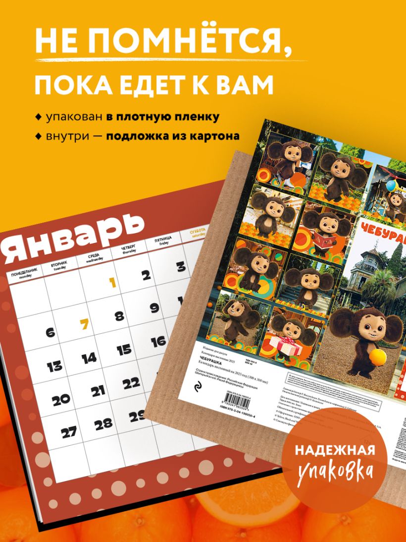 Милый пушистый Чебурашка стал уже по-настоящему родным для всех, любимый персонаж советской мультипликации закрепился в народном сознании как синоним тепла и радости. Оформление календаря подарит теплые и положительные эмоции взрослым и детям, а большой формат 300 х300 мм и высокое качество производства привнесут удобство и комфорт в жизнь каждого покупателя.