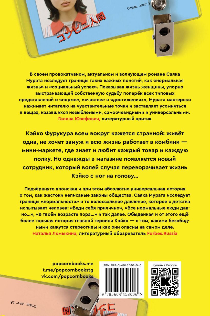 «В своем провокативном, актуальном и волнующем романе Саяка Мурата исследует границы таких важных понятий, как "нормальная жизнь" и "социальный успех". Показывая жизнь женщины, упорно выстраивающей собственную судьбу поперек всех типовых представлений о "норме", "счастье" и "достижениях", Мурата мастерски нажимает читателю на чувствительные точки и заставляет усомниться в вещах, казавшихся незыблемыми, самоочевидными и универсальными». — Галина Юзефович, литературный обозреватель Meduza.io