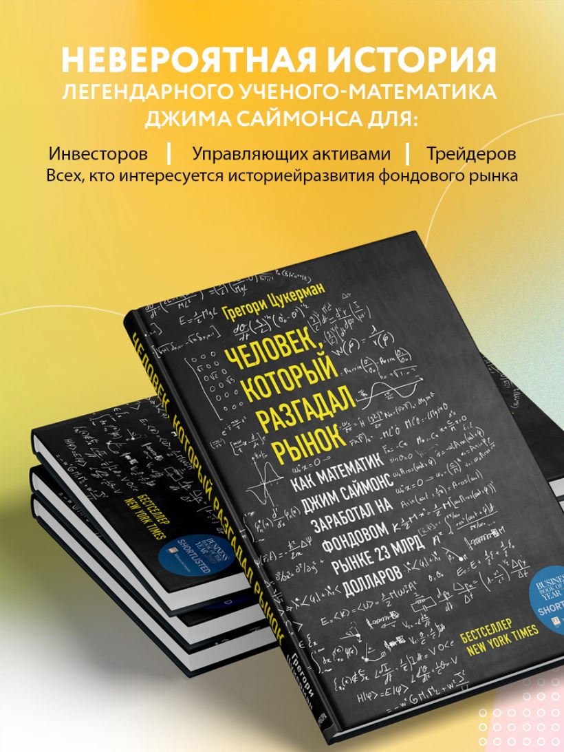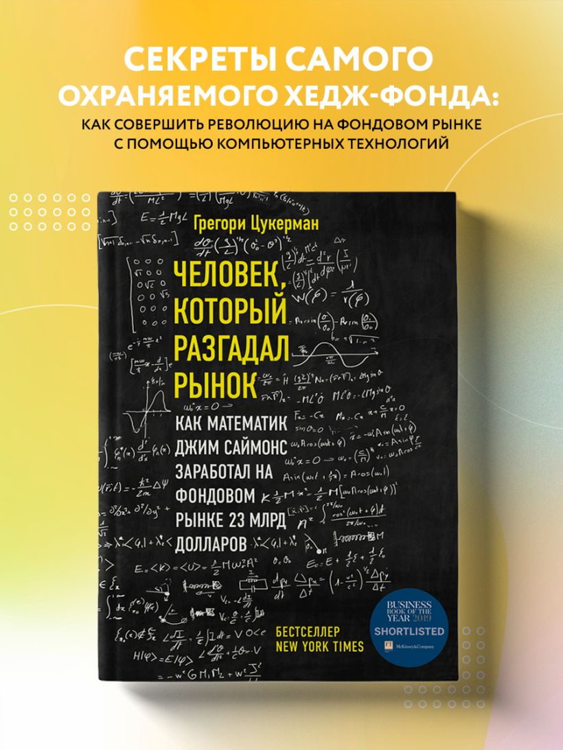 Журналисту Грегори Цукерману удалось взять интервью у десятков свидетелей деятельности Саймонса. Среди них сотрудники хедж-фонда, родственники и сам учёный, который до последнего был против написания этой книги. О том, как получилось у Джима Саймонса создать самый успешный хедж-фонд в мире и чего ему это стоило, читайте в этой удивительной истории.