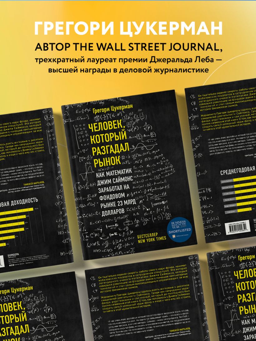 «У нас очень мало достойных историй про алготрейдинг на русском языке, и я рад, что эта книга вышла в свет. Не ищите тут священный грааль — это книга о сверхуспешном человеке, а не о его методах. Саймонс — икона алготрейдинга. RenTech — невероятно закрытый фонд, их секреты и технологии охраняются как государственная тайна. Если вы уже что-то понимаете в этом, то книга обязательно захватит вас и не даст оторваться, пока вы не закончите чтение». — Тимофей Мартынов, трейдер, основатель сообщества Смартлаб, автор книги «Механизм трейдинга. Как построить бизнес на бирже?»