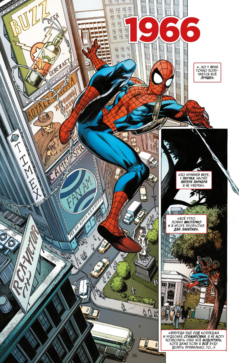 В 1962 году в «Удивительном фэнтези» #15 пятнадцатилетний Питер Паркер был укушен радиоактивным пауком и стал удивительным Человеком-Пауком! Пятьдесят семь лет прошло в нашем мире с того момента… Так что бы стало с Питером, если бы для него прошло столько же? В честь 80-летней годовщины Marvel Чип Здарски и легенда паучьих комиксов Марк Багли объединились, чтобы сплести уникальную историю про Паучка – пересказать всю его жизнь от начала и до конца, поставив его перед значимыми событиями десятилетий, которые мы пережили! От войны во Вьетнаме, Секретных войн и Гражданской войны до миссии, которая может стать последней для 72-летнего Человека-Паука. Приготовьтесь увидеть историю жизни Питера Паркера, растянувшуюся на 57 лет поразительных сюжетов… и узнайте, что случится с ним и его родными!