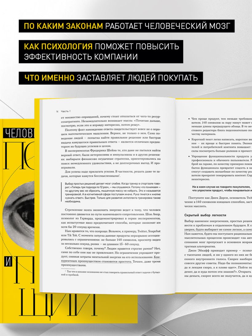 В своей книге он объясняет, по каким законам работает человеческий мозг и как психология поможет повысить эффективность компании — от разработки продукта до управления бизнес-процессами.