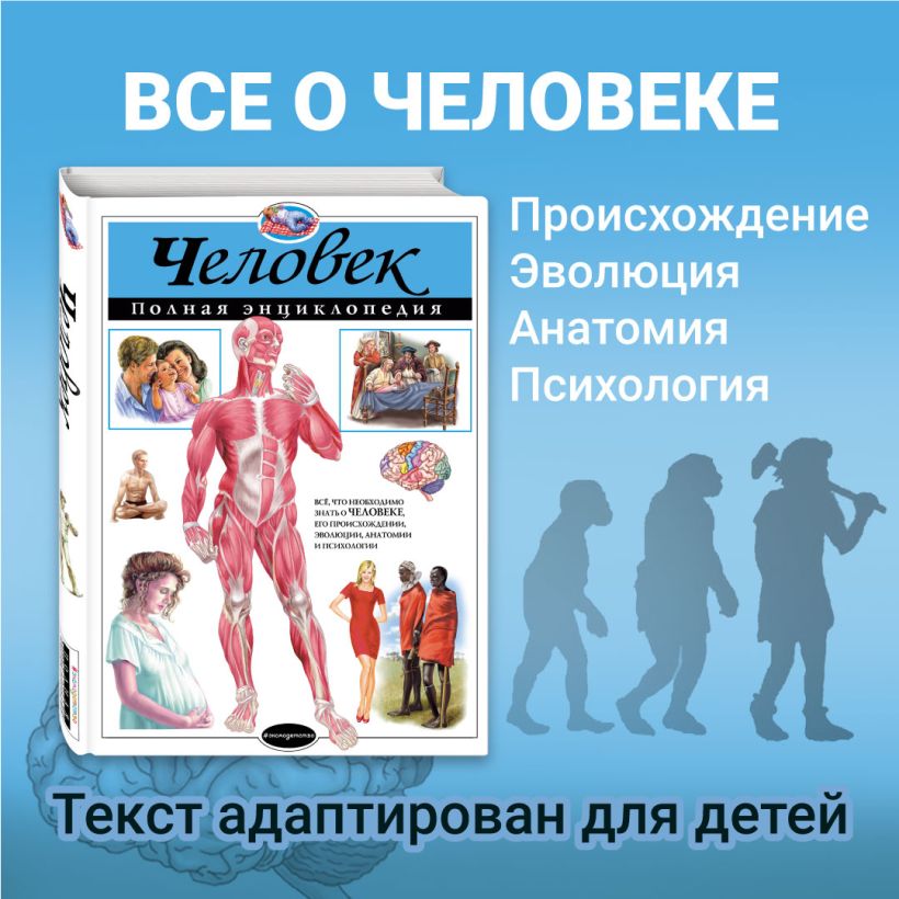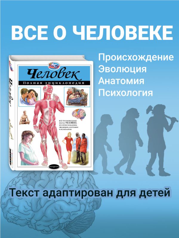 В этой полной энциклопедии есть всё, что необходимо знать о человеке, его происхождении, истории, эволюции, анатомии и психологии! Самые интересные факты о рождении и смерти, способностях мозга, наших первобытных предках, психологии, генетике и ещё многом другом. Книга способна заинтересовать этой захватывающей и разнообразной информацией как подростка, так и взрослого.