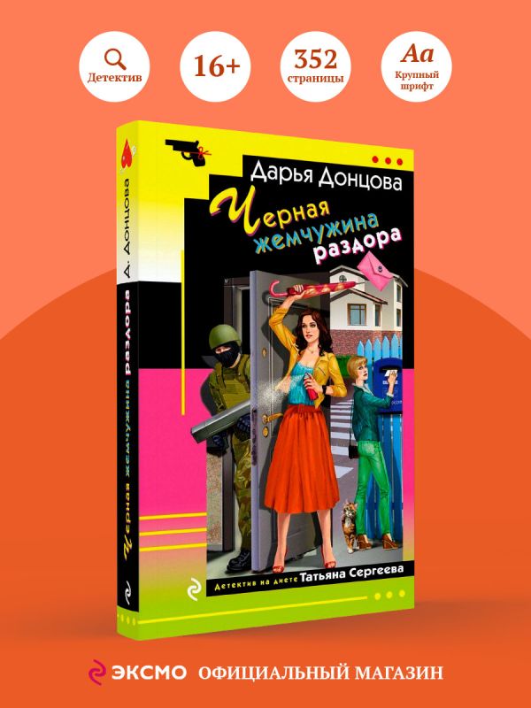 «Кладбище чужих секретов» Краткое определение интеллигентного человека таково: он очень хочет дать кому-то в глаз, но сдерживается и радостно улыбается всему миру. Вот и Иван Подушкин всегда радуется клиентам, даже если они приходят без предупреждения. Повод для визита к детективу у врача Деревянкина Рудольфа оказался просто ужасным. Его мать, эксцентричная Элли, умерла при весьма странных обстоятельствах. Вскрытие обнаружило отравление адским коктейлем из разных препаратов. Рудольф просит Ивана найти убийцу. В поисках правды сыщик сталкивается с загадочным «Великим Жрецом». Его ритуалы в заброшенном селе Бакино связывают жизни матери Рудольфа, ее подруги Николетты и других влиятельных персон. Мистические собрания, кладбище секретов и вода из проклятого болота — ключи к разгадке смерти Элли... Дарья Донцова — самый популярный и востребованный автор в нашей стране, любимица миллионов читателей. В России продано более 200 миллионов экземпляров ее книг. Ее творчество наполняет сердца и души светом, оптимизмом, радостью, уверенностью в завтрашнем дне! «Донцова невероятная работяга! Я не знаю ни одного другого писателя, который столько работал бы. Я отношусь к ней с уважением, как к образцу писательского трудолюбия. Женщины нуждаются в психологической поддержке и получают ее от Донцовой. Я и сама в свое время прочла несколько романов Донцовой. Ее читают очень разные люди. И очень занятые бизнес-леди, чтобы на время выключить голову, и домохозяйки, у которых есть перерыв 15—20 минут между отвести-забрать детей». — Галина Юзефович, литературный критик «Амур с гранатой» Почему мы доверяем людям? Одним — потому что хорошо с ними знакомы. Другим — потому что совсем с ними не знакомы. Вера Холодова бесконечно доверяла своему сожителю Сергею Кузнецову! И чем же он ей отплатил? Пара жила душа в душу. Сергей дарил подарки, купил щенка и котенка, обещал Вере настоящую свадьбу. И вот недавно, приехав с работы, Вера обнаруживает у дома чемоданы со своими вещами. Рядом котенка со щенком, привязанных к лавочке, и записку со словами: «Я вернусь! Зуб даю! А пока уезжай к себе…» Холодова обращается в офис особых бригад с просьбой разыскать возлюбленного. Татьяна Сергеева и Димон Коробков начинают расследование. Сыщики узнают, что мужчина часто менял номера телефонов и не всегда был честен с Верой. Вероятно, он вообще был не тем, за кого себя выдавал. Но в ходе расследования выясняется, что Сергей вовсе не первый «пропавший» мужчина в жизни Холодовой, и дело может быть гораздо серьезнее, чем кажется на первый взгляд. Дарья Донцова — самый популярный и востребованный автор в нашей стране, любимица миллионов читателей. В России продано более 200 миллионов экземпляров ее книг. Ее творчество наполняет сердца и души светом, оптимизмом, радостью, уверенностью в завтрашнем дне! «Донцова невероятная работяга! Я не знаю ни одного другого писателя, который столько работал бы. Я отношусь к ней с уважением, как к образцу писательского трудолюбия. Женщины нуждаются в психологической поддержке и получают ее от Донцовой. Я и сама в свое время прочла несколько романов Донцовой. Ее читают очень разные люди. И очень занятые бизнес-леди, чтобы на время выключить голову, и домохозяйки, у которых есть перерыв 15—20 минут между отвести-забрать детей». — Галина Юзефович, лите