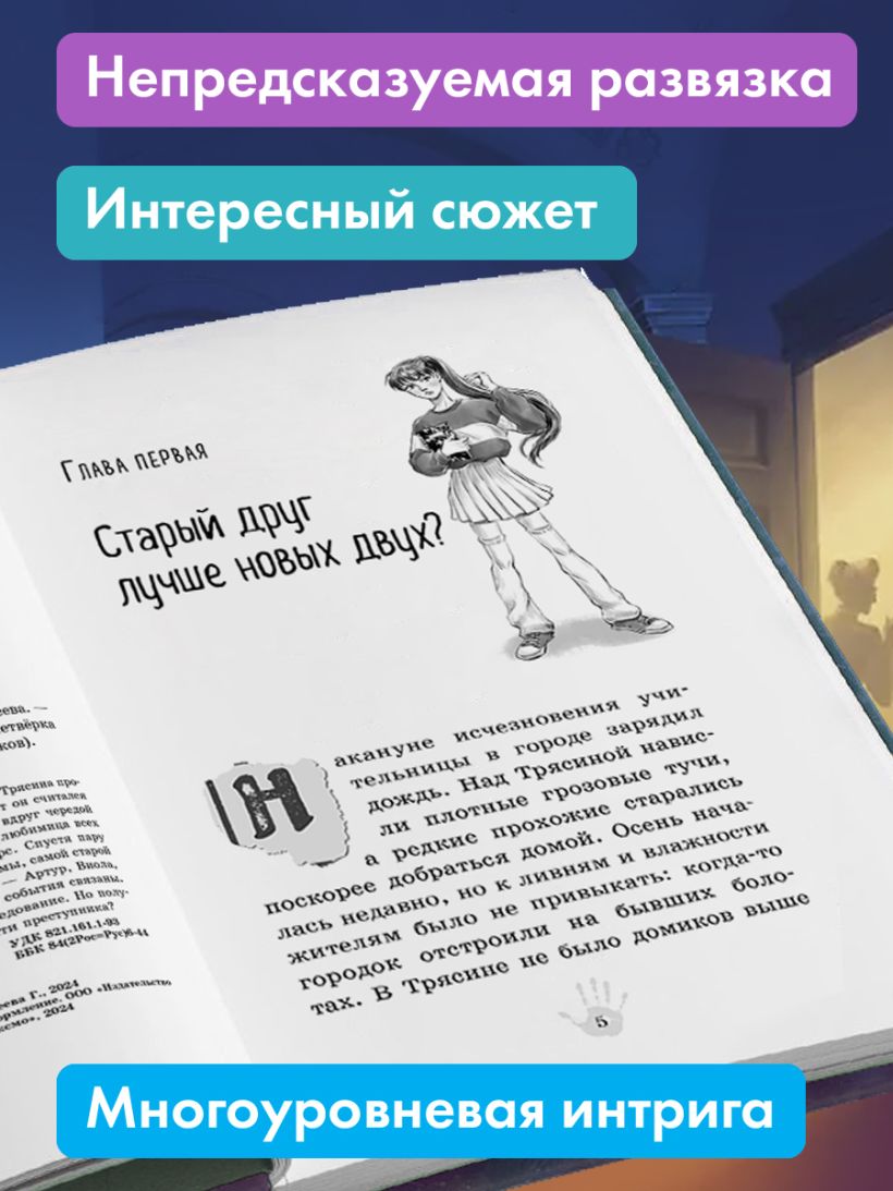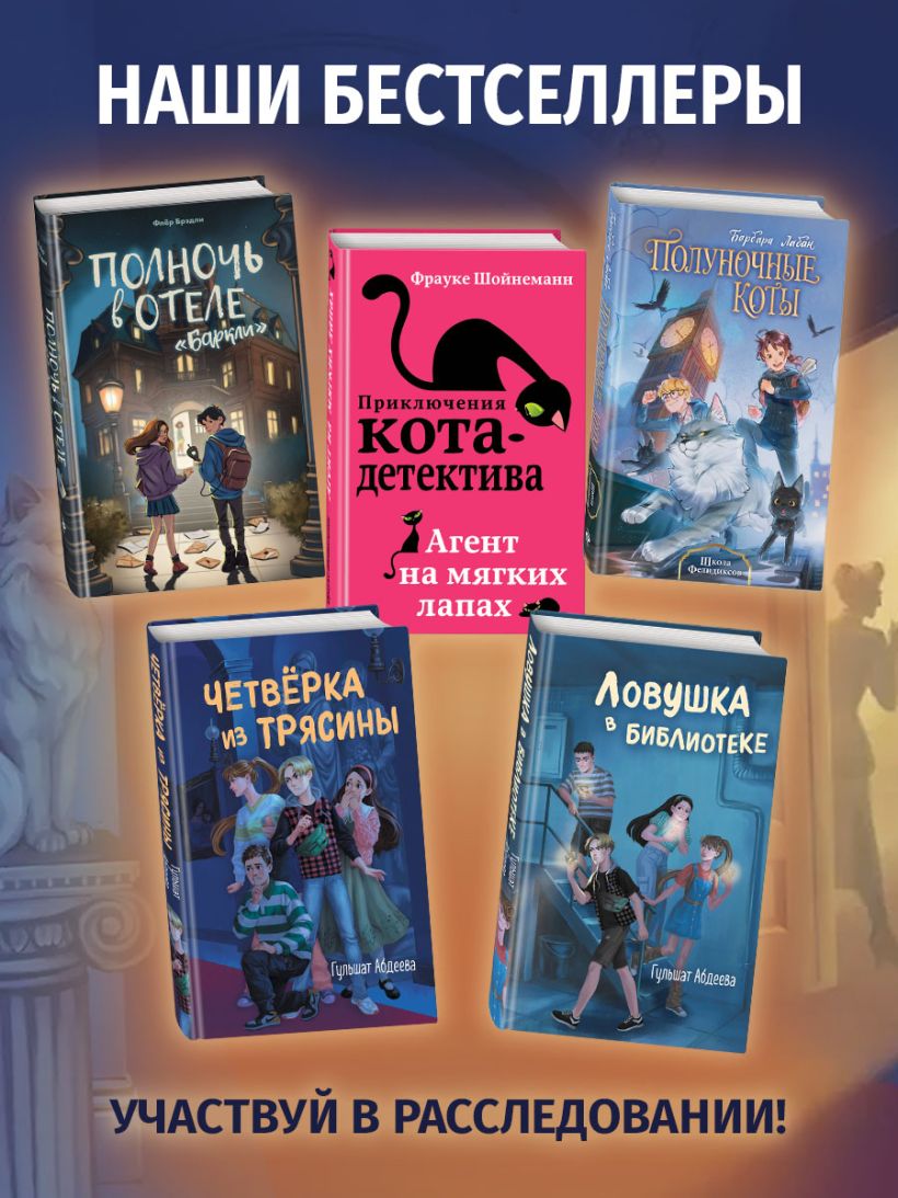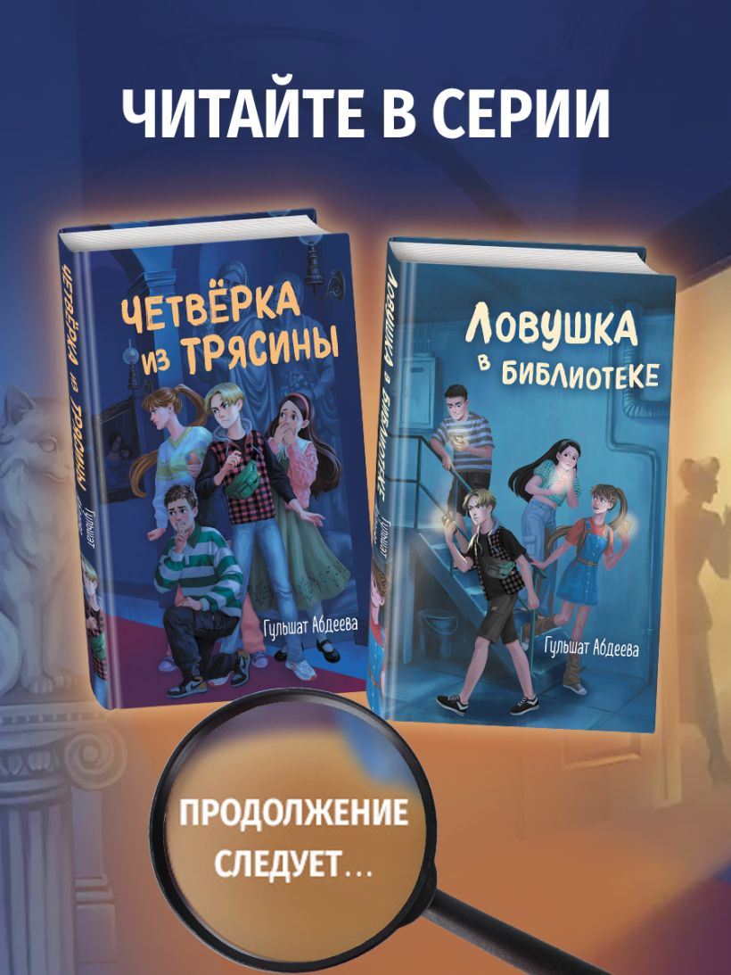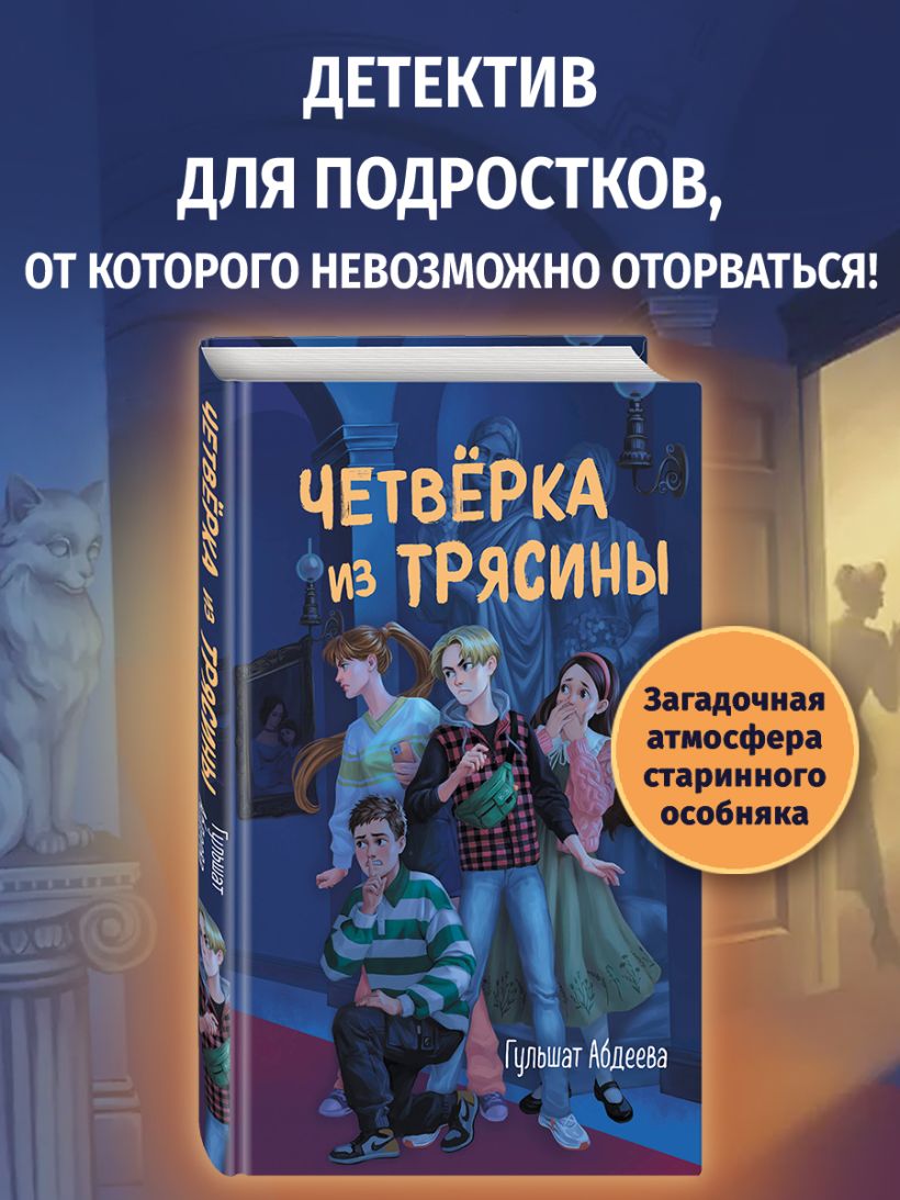 Продолжение популярной серии о расследованиях четверых друзей! На этот раз их ждут секреты музейных подвалов и поиски того, о чем не знает даже Гугл! Артур, Роза, Виола и Люк известны как «Четверка из Трясины». Им всего по четырнадцать лет, но они уже опытная команда детективов. Ребята услышали, как некто шантажирует отца их одноклассника Эмиля, директора местного музея. В обмен на сохранение тайны преступник потребовал от директора отдать ящики с экспонатами для новой выставки. Она шумно рекламируется и должна скоро открыться, только ее содержание — сюрприз. Если сорвется открытие выставки, директор потеряет место и может попасть под суд за потерю экспонатов. Но и раскрытие тайны угрожает ему теми же последствиями, если не хуже. Эмиль умоляет друзей помочь его папе. «Четверка» не может остаться в стороне и начинает новое расследование! Гульшат Абдеева — автор книг для детей и подростков, лауреат множества литературных премий. Ее детективы увлекательны и полны неожиданных сюжетных поворотов в лучших традициях жанра. Для любителей книг Энид Блайтон, поклонников «Золота скифов» Дмитрия Емца и тех, кто вырос на серии про Мейзи Хитчинс Холли Вебб. Книга подходит для читателей от 10 лет.