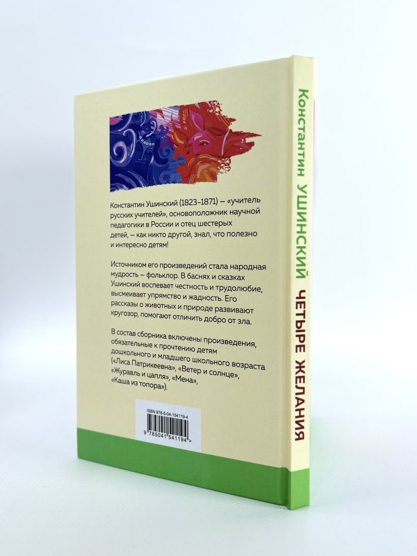 В состав сборника включены произведения, обязательные к прочтению детям дошкольного и младшего школьного возраста («Лиса Патрикеевна», «Ветер и солнце», «Журавль и цапля», «Мена», «Четыре желания», «Каша из топора»).