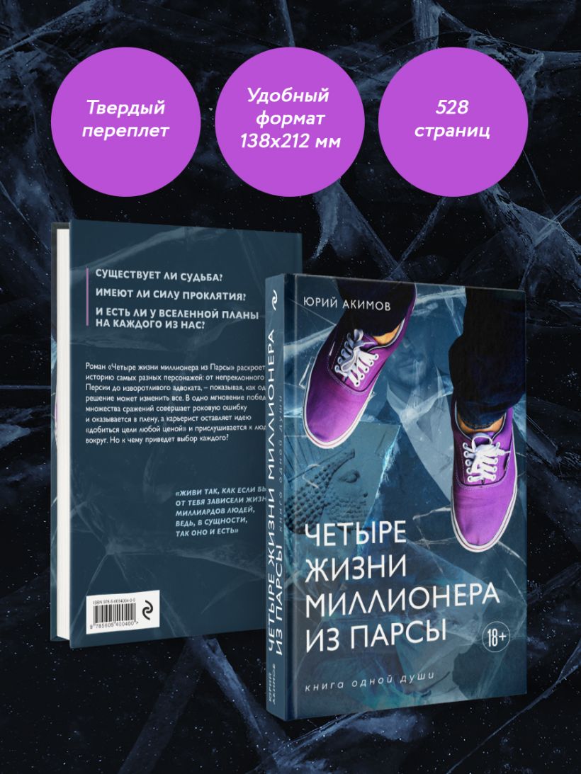 Роман «Четыре жизни миллионера из Парсы» раскроет историю самых разных персонажей: от непреклонного царя Персии до изворотливого адвоката, — показывая, как одно решение может изменить все. В одно мгновение победитель множества сражений совершает роковую ошибку и оказывается в плену, а карьерист оставляет идею «добиться цели любой ценой» и прислушивается к людям вокруг.