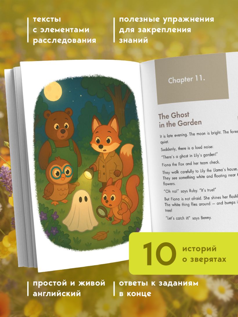 Особенно если рядом — хвостатые детективы! В этой книге дети будут читать милые и забавные истории про зверят-сыщиков, раскрывать вместе с ними загадки и попутно — учиться английскому.