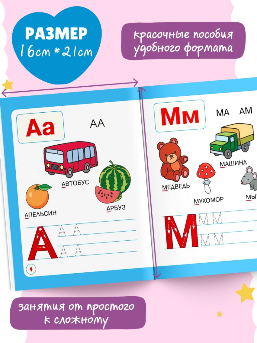 Чтение — основной навык, от которого зависит не только успех ребенка в школе, но и его будущее. Наиболее эффективный метод обучения чтению — слоговой. Сочетание этого метода с письмом и постепенным усложнением — от букв к слогам, словам, потом к простым предложениям и текстам — гарантирует устойчивый успех и прогресс, который будет заметен ребенку и станет мотивировать его к обучению. Развивающее пособие поможет ребенку легко и с удовольствием освоить базовые навыки: быстро запомнить буквы и их написание; научиться читать слоги, слова, предложения и тексты, увеличить словарный запас, развить речевые навыки. Вместе с этим пособием чтение превратится в интересное приключение, и ребенок не заметит, как пролетит время. Книга-развивашка, предназначенная для совместных занятий мамы и ребенка, станет надежным помощником в процессе подготовки к школе. Простые задания легко выполнять дома, на прогулке или в дороге. Обучение, проходящее в виде веселой увлекательной игры, поможет ребенку почувствовать уверенность в своих силах. Простые задания, представленные в тренажере, легко выполнять дома, на прогулке или в дороге. Книга идеально подойдет для занятий с детьми 4, 5, 6 лет, так как учитывает их особенности восприятия и интересы.