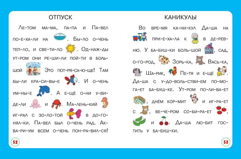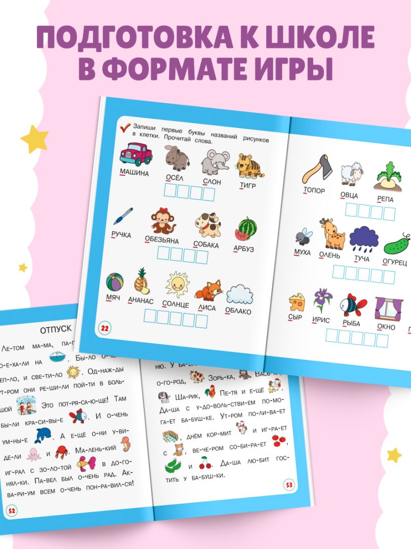 Эта книга для тех детей, которые уже научились читать, но пока делают это не очень хорошо. В ней есть небольшие по объему тексты, предложения и слова — простые по структуре, сюжет увлекательный, шрифт — крупный, как в «Азбуке». Это не простой сборник заданий, а книга-игра.