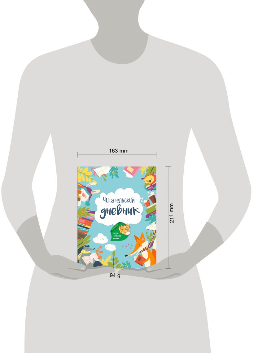 Для кого: - для тех, кто очень любит книги; - для тех, кто много читает; - для тех, кто хочет навсегда сохранить впечатления от каждой книги; - для тех, кто любит придумывать собственные интересные и захватывающие истории. В дневнике вас ждут: - пустые строки, где вы сможете составить список книг, которые планируете прочитать; - страницы, разделенные на колонки, куда вы сможете внести свои пункты для заполнения; - яркие иллюстрации, которые дополняют страницы. Еще вас ждет отличный бонус в виде набора ярких стикеров. Технические параметры: - удобный формат А5 (162×210 мм); - 64 страницы на офсетной бумаге; - стильная обложка из переплетного картона; - расчерченный блок для тех, кто хочет выразить свою индивидуальность. Читательский дневник станет отличным подарком для каждого любителя книг. Также вас порадует качество материалов, из которых выполнен дневник. Плотная обложка и страницы помогут сохранить записанное в него на долгие годы.