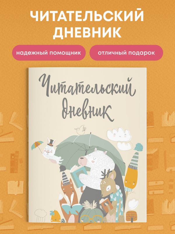 Читательский дневник с анкетой. Звери под зонтиком (32 л., мягкая обложка)
