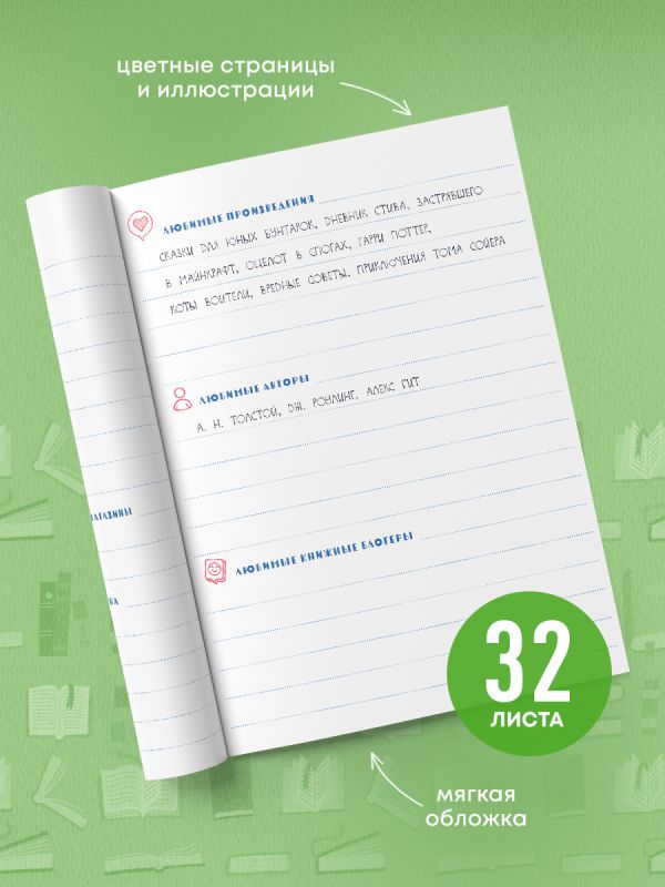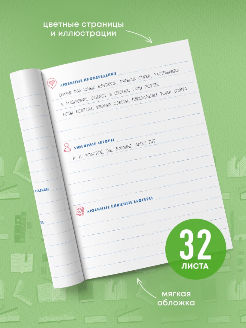 Читательский дневник с анкетой. Цветные книги (32 л., мягкая обложка)