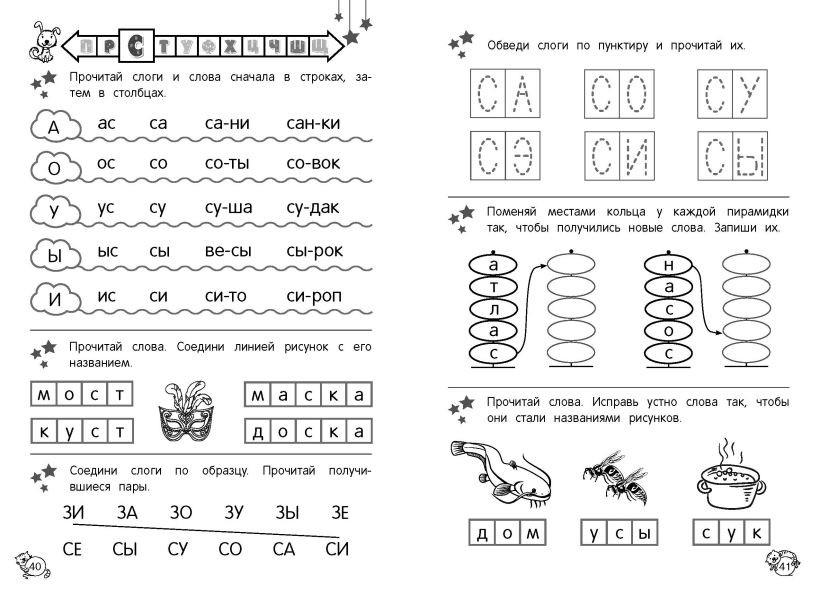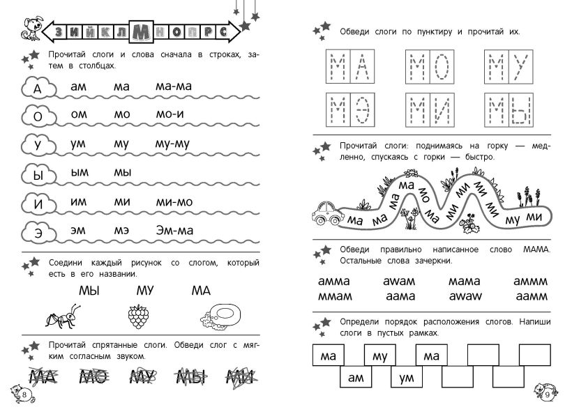 Выполняя увлекательные игровые задания, дошкольник будет соединять буквы в слоги, делить слова на слоги и писать их печатными буквами, читать по слогам и рисовать слоговые схемы, разовьет внимание и память, мышление и связную речь. Именно эти навыки позволят ему в дальнейшем успешно учиться в школе и реализовать все свои таланты. Классическая методика, используемая авторами пособия, гарантирует высокий результат. Кроме того, занимаясь, ребенок станет более усидчивым, внимательным и организованным, приобретет опыт самоконтроля и самооценки, а главное, будет положительно настроен к обучению и уверен в своих силах. Все задания сформулированы просто, не требуют пояснений со стороны взрослого и разнообразны по своему характеру, что позволит ребенку чаще менять виды деятельности и меньше уставать.