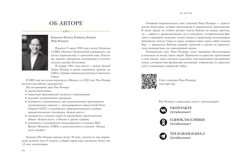 Рик Реннер — известный христианский писатель, доктор богословия и проповедник, автор более 50 книг, часть из которых — мировые бестселлеры! Епископ церкви «Благая весть» и её филиалов в России и других странах, руководитель международного служения Rick Renner Ministries, служения «Благая весть онлайн» и двух русскоязычных христианских телеканалов GNC и ТБВ.