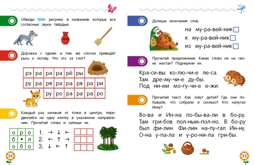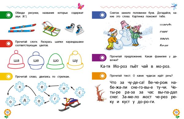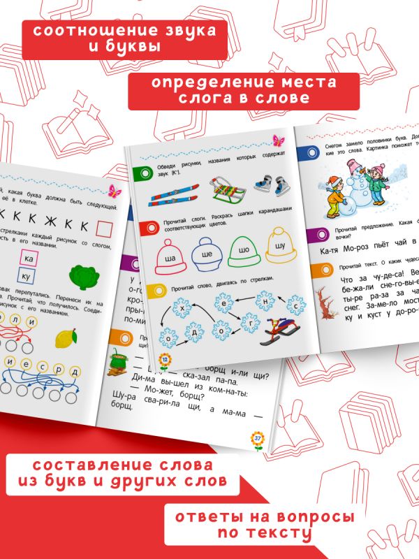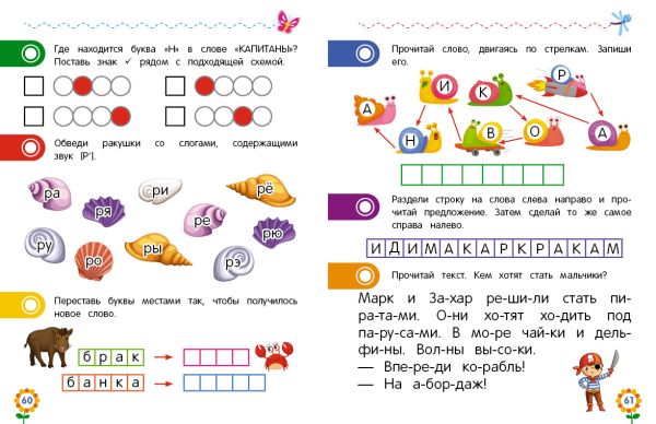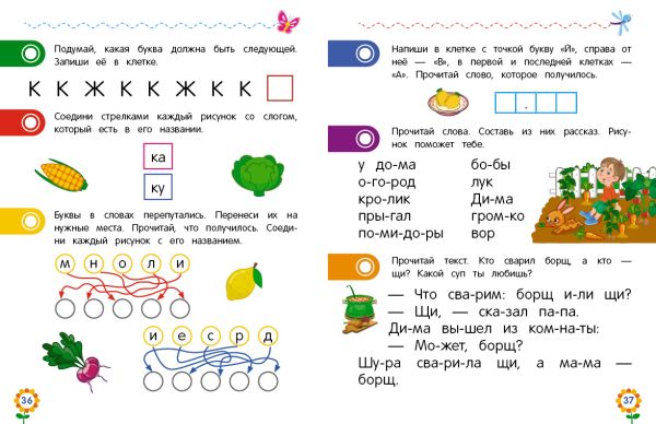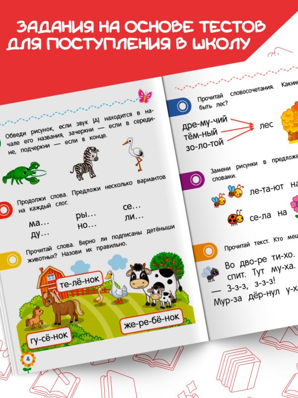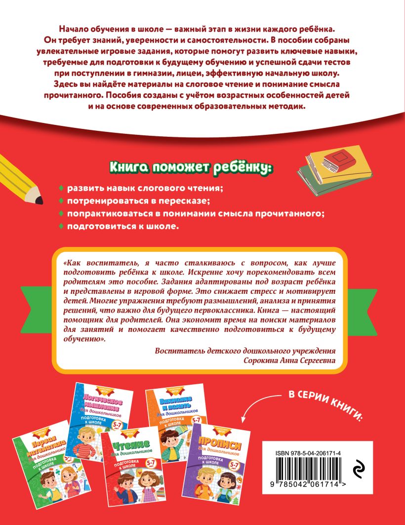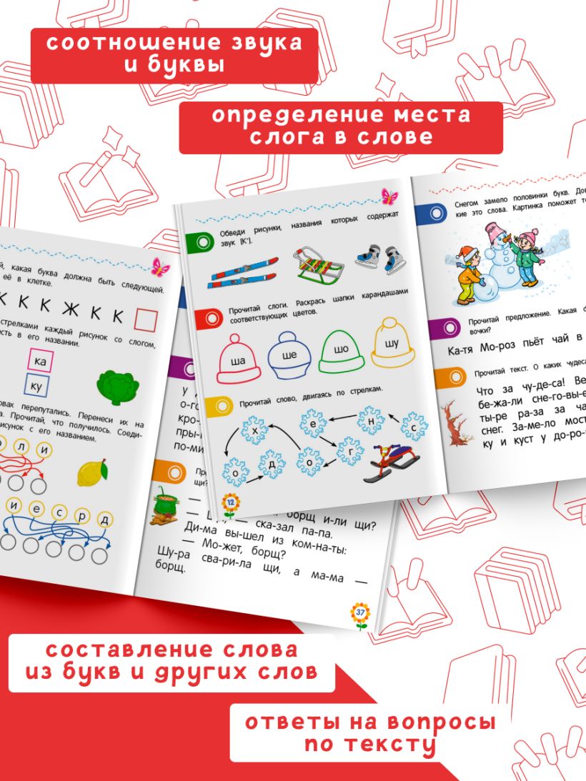Поступление в 1-й класс — важнейший этап в жизни ребёнка, и к нему нужно хорошо подготовиться. Тренажёр включает в себя задания разного типа на проверку степени усвоения ребёнком навыков слогового чтения и понимания смысла прочитанного. С помощью пособия можно проверить уровень сформированности навыков чтения у будущего первоклассника: умеет ли он соотносить звук и букву, определять место слога в слове, составлять слова из букв и других слов, ставить ударения, различать предложения по интонации, отвечать на вопросы по тексту. Задания, представленные в тренажёре, помогут оценить способности ребёнка, определить, с чем он справляется успешно, и выделить те области, которые вызывают у него затруднения. Книга-развивашка от издательства «Эксмо» будет полезна девочкам и мальчикам 5, 6, 7 лет для подготовки к школе. Рекомендуем также приобрести пособия: «Первая математика», «Графические навыки», «Логическое мышление», «Внимание и память».