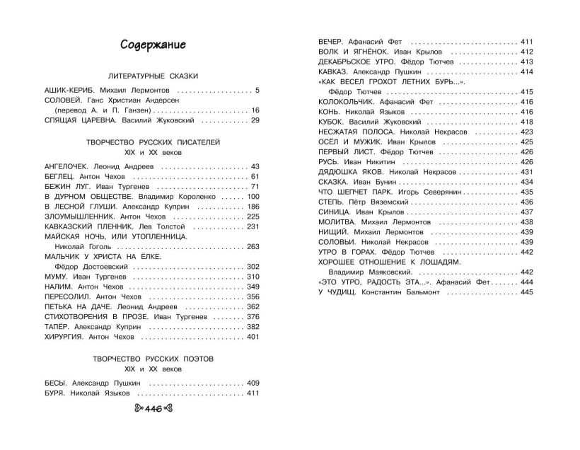 Хрестоматия содержит произведения, которые задают для чтения на лето в большинстве школ России. В состав хрестоматии вошли литературные сказки отечественных и зарубежных авторов, произведения писателей и поэтов XIX—XX веков: Пушкина, Лермонтова, Крылова, Жуковского, Тютчева, Бальмонта, Некрасова, Маяковского, Чехова, Куприна, Тургенева, Короленко, Андреева, Андерсена и других. Все тексты без сокращений. Хрестоматия направлена на то, чтобы привить ученику любовь к чтению, расширить его кругозор, развить речь. Кроме того, книга имеет очень удобный формат, ее можно взять с собой в дорогу или на отдых.