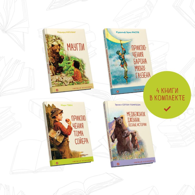 Набор "Чтение в начальной школе 1-4 класс" (из 4 книг: Маугли, Приключения барона Мюнхгаузена, Приключения Тома Сойера, Медвежонок Джонни. Лесные истории)