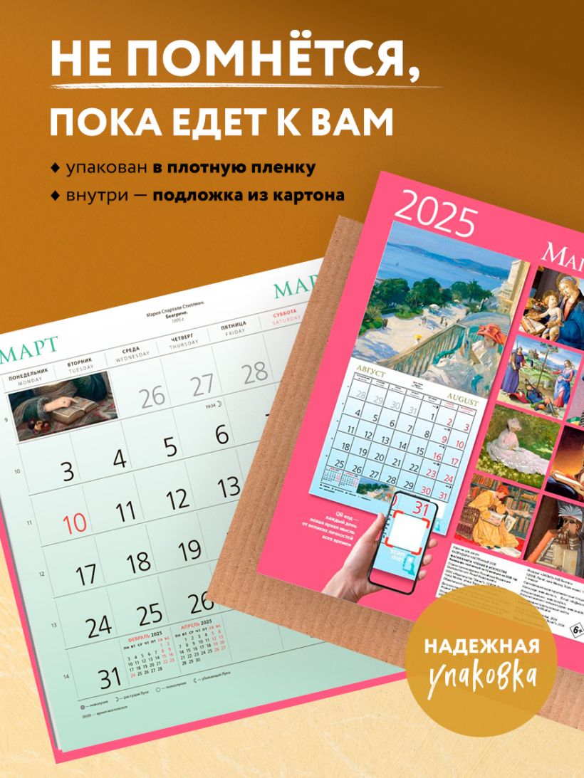 В этом настенном перекидном календаре на 2025 год представлены знаменитые картины великих художников, посвященные литературе и ее месту в истории! Повесьте этот календарь в своем доме или на рабочем месте, и он достойно украсит любой интерьер. А календарный блок напомнит о важных событиях года. В центре календаря помещен большой арт-постер, который может стать отдельным декоративным украшением интерьера.