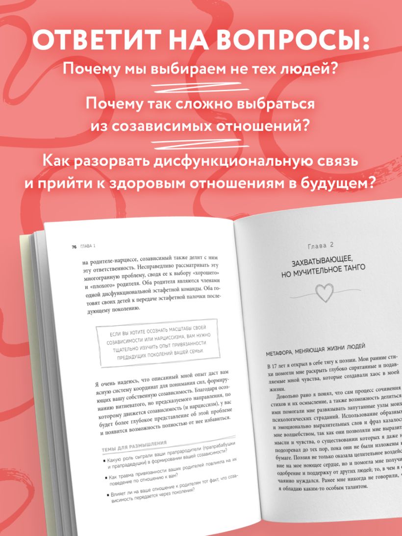 АЛИНА СОТОВА — экзистенциальный психолог, много лет работает с клиентами, которые чувствуют себя «заложниками» отношений, и помогает обрести границы, уважение и внутреннюю опору. У созависимости много лиц. Кто-то спасает и «чинит» других, кто-то требует любви, но боится близости, а кто-то растворяется в партнере, теряя себя. В этой книге вы найдете три самых распространенных сценария созависимости, основанные на работе автора с сотнями клиентов, которые годами жили в патологических отношениях. Через их судьбы, терапевтичные диалоги и комментарии психолога вы увидите, как одна и та же боль проявляется по-разному, почему мы так долго держимся за разрушительные отношения и как шаг за шагом выйти из этого круга. Это книга о возвращении к себе. О свободе, где наличие здоровых отношений перестает быть роскошью. «Отличное подспорье для каждой женщины, настрадавшейся в отношениях. Она мягко и бережно помогает осознать разрушительные сценарии и дает практические инструменты, чтобы вернуть себе себя». — Наталья Жукова, нейропсихолог-реабилитолог, магистр психологических наук