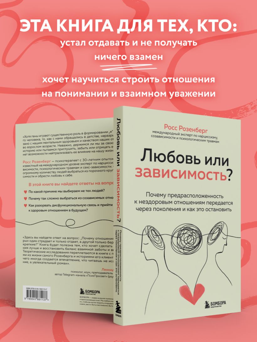 Росс Розенберг — психотерапевт с 30-летним стажем, известный на международном уровне эксперт по нарциссизму, созависимости, психологическим травмам и секс-зависимости. Он помог огромному количеству людей выбраться из порочного круга созависимости и обрести любовь к себе. Эта книга будет полезна тем, кто устал от нездоровых отношений, устал давать, не получая ничего взамен, и хочет научиться строить отношения, основанные на понимании и взаимном уважении.