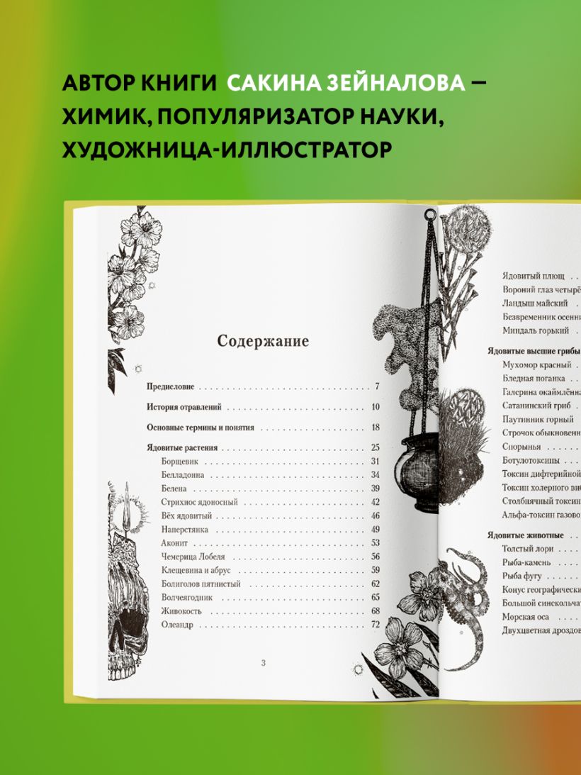 При этом, важно отметить, что Сакина является и автором книги, и художником, весьма щедро проиллюстрировавшим собственное творение, что делает "Яды: вокруг и внутри" поистине уникальным изданием. Хочется отметить высокое качество полиграфии, толстую обложку, плотную бумагу и, как уже упоминалось, большое количество иллюстраций, выполненных автором самостоятельно.