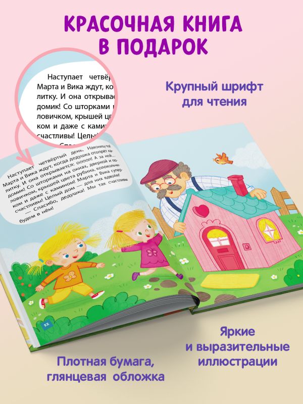 Кроме того, книга имеет глянцевый лак на обложке и станет отличным подарком, ведь в ней есть всё для интересного и комфортного чтения: яркие, выразительные иллюстрации, крупный шрифт и качественная плотная бумага.
