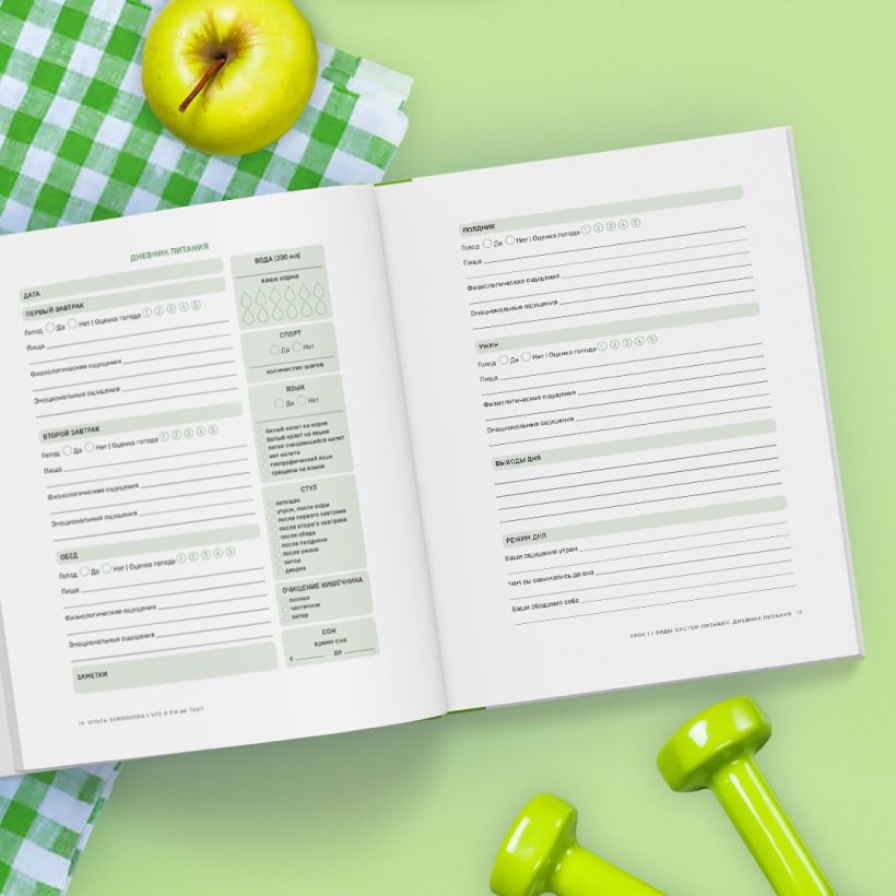 - Вы научитесь заполнять дневник питания и познакомитесь со своим телом заново.