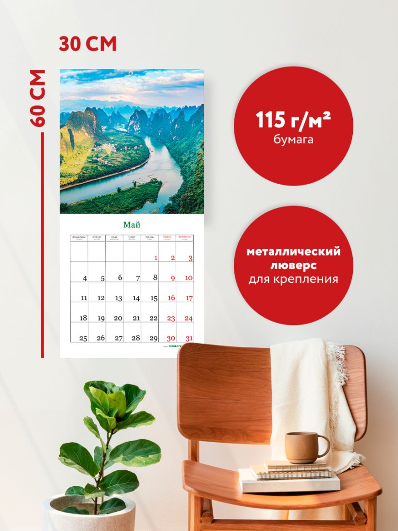 - Тип календаря — настенный перекидной.