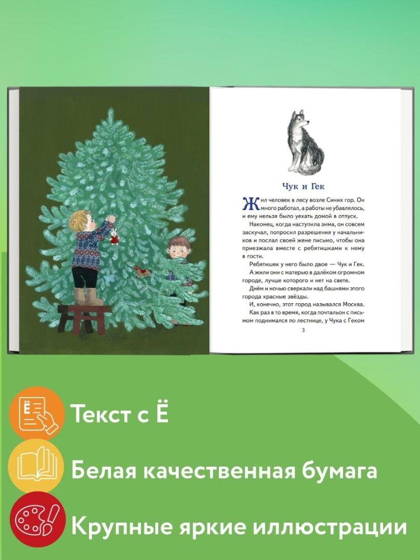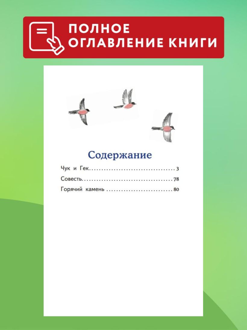 В книгу вошли рассказы Аркадия Гайдара «Чук и Гек» и «Совесть» и сказка «Горячий камень». Произведения писателя удивительно достоверно передают мысли и чувства детей, сближая маленьких читателей с героями произведений.